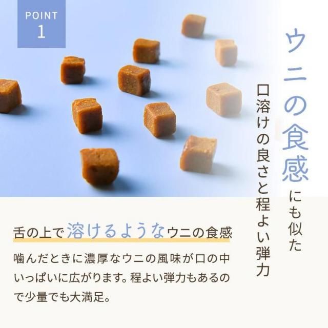 舌の上で溶けるようなウニの食感.。んだときに濃厚なウニの風味が口の中いっぱいに広がります。程よい弾力もあるので少量でも大満足。