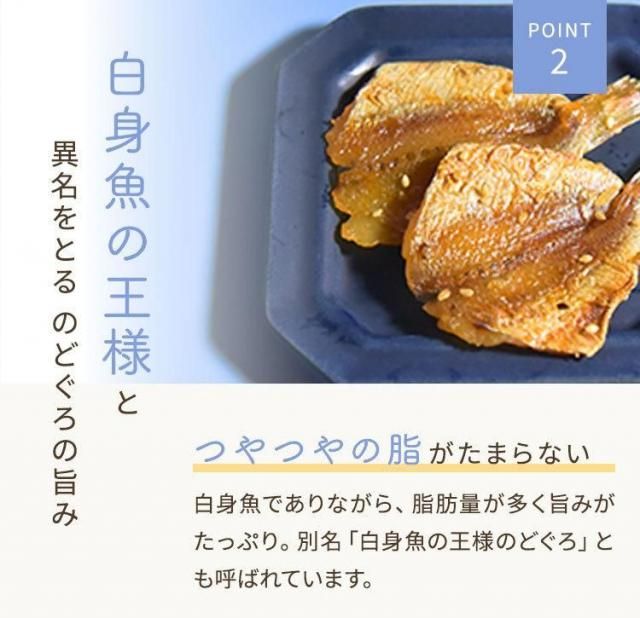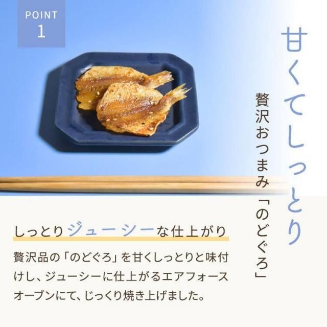 しっかりジューシーな仕上がり。贅沢品の「のどぐろ」を甘くしっとりと味付けし、短時間でジューシーに仕上がる「エアフォースオーブン」にて、じっくり焼き上げました。つやつやの脂がたまらない 白身魚でありながら、脂肪量が多く旨みがたっぷり。 別名「白身魚の王様 のどぐろ」とも呼ばれています。