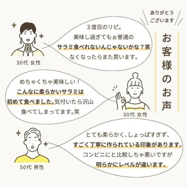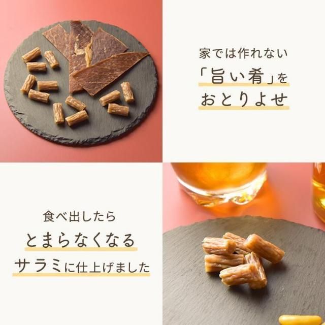 小包装なので、好きな分を好きなだけ食べることができます。噛むほどに豚肉と牛肉の旨味とコクを味わえるので、一度食べるとパクパクと止まりません。あっさりしているサラミをぜひご賞味ください。