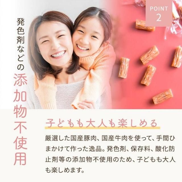【原材料】豚肉(国産)、豚脂肪、牛肉、還元水飴、粉末水飴、食塩、香辛料、ビーフエキス、酵母エキス