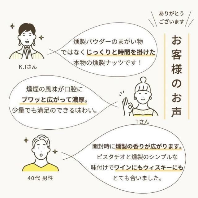 ピスタチオが大好きなので購入しました。燻製されたものは初めて食べたのですが美味しかったです。