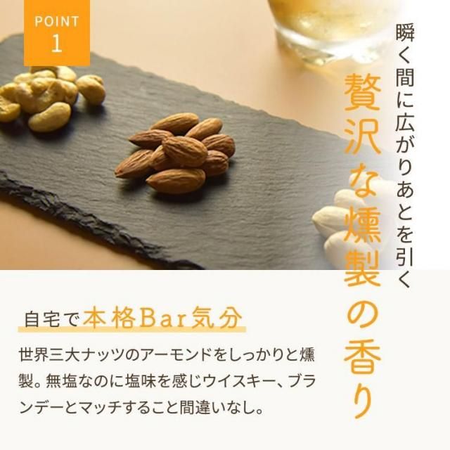 燻製のプロシリーズはアーモンド、カシューナッツ、ピスタチオの全3種類。3種すべてが楽しめるセットもあるので、その日の気分に合わせて楽しむことができます。